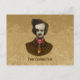 Edgar Allan Poe, aterrorizado, a ver um inseto de ouro a subir na gravata. Desenho colorido da caneta de tinta. Texto personalizado.
