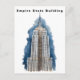 Suba às alturas da cidade de Nova York com este incrível cartão-postal do Edifício Empire State! Esta ilustração em aquarela cativante apresenta o magnífico Edifício Empire State, um símbolo duradouro da cidade de Nova York e um dos arranha-céus mais reconhecidos do mundo. O estilo artístico captura lindamente a grandiosidade e os detalhes intrincados deste marco icônico de NYC, apresentado contra um impressionante fundo de aquarela azul.