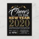 Efeito de folha de ouro, bolhas de champanhe, convite de código postal de Ano Novo. Perfeito para usar para convidar seus amigos e familiares para as celebrações de Ano Novo.