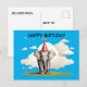 Este é um design gerado por IA. Eu queria um elefante usando um chapéu de aniversário em uma pastagem e foi o que eu consegui. Pensei que um fundo azul claro para o elefante ficava bom. No verso, coloquei o texto Entregue de:, Enviar para: