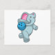 Cartão Postal Elefante jogando boliche com bola de boliche