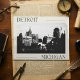 Volte no tempo com este fino cartão postal preto-e-branco mostrando a elegância eterno de Detroit, Michigan. A arquitetura clássica e o encanto histórico da Cidade Motor são capturados lindamente, refletindo seu rico patrimônio e seu passado estoriado. Perfeito para entusiastas da história, admiradores de arquitetura e amantes da estética vintage, este cartão postal oferece um vislumbre do horizonte icônico de Detroit. Compartilhe a beleza duradoura de Detroit com amigos e familiares, celebrando uma cidade que resistiu ao teste do tempo.