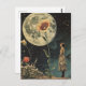 Entra num mundo de charme vintage com este cartão-postal sereno com uma mulher contra o brilho luminoso de uma lua de crescente ou de cheio. Os tons suaves e nostálgicos parecem evocar a beleza do eterno e a introspecção silenciosa, fazer-a uma peça perfeita para amantes da arte clássica e designs inspirados no celeste.