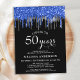 Cartão Postal Elegante Blue Silver Black Glitter Drip 50 Birthda