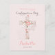 Cartão Postal Elegante confirmação em rosa bege floral cruz nome