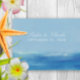 Cartões-postais de casamento com tema marinho com ondas de água marinha em aquarela e tipografia simples e elegante e fontes modernas sem serifa. Projetado para combinar com nossos convites de casamento elegantes de aquarela oceânica.