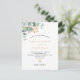 Um fundo branco chic. Decorados com folhas de eucalipto, prigos, verde e dourado, de cor aquosa verde. Personalize e adicione seus nomes e detalhes do casamento. Letras pretas e ouros. Traseiro: design postal. Dica: Se você não quiser que pareça um cartão postal, clique em personalizar, vá para o verso e remova o divisor e o carimbo de posto.