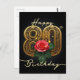 Este não é apenas um cartão; é uma vibrante celebração capturada no papel. No seu centro, um "80" dourado ornamentado brilha como uma relíquia preciosa, perfeitamente complementado por uma rosa rosa exuberante, simbolizando beleza duradoura. "Feliz Aniversário" flui graciosamente em escrita elegante, emoldurando o design com sofisticação. Este cartão postal, colocado contra um fundo rico e escuro, cria uma imagem visual impressionante. Personalize o texto para tornar este lindo design exclusivamente seu – uma lembrança verdadeiramente inesquecível dos 80 anos.