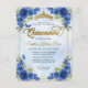 Marinho Botânico Floral Azul Dourado Tiara Crown Sparkle Glitter RSVP Birthday Quinceañera Convite
