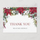 Cartão de Agradecimento de Casamento de Natal com Poinsettia Vermelha Elegante.