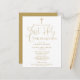 Este convite de primeira comunhão em script dourado elegante pode ser personalizado com todas as informações da sua celebração especial. Criado por Thisisnotme©