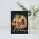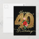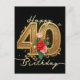 Cartão Postal Elegante Rosa Rubi com Filorça Dourada para 40º An