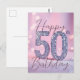Cartão Postal Elegante Rosa Violeta Suave e Brilho Prateado 50º