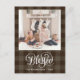 Envie cartões de natal personalizáveis e personalizados a amigos, colegas e familiares em cartões de estilo simples, chic, elegantes e modernos de design fotofestivo, minimalista natural! Uma bela caligrafia de "Abençoados" quadros na parte inferior da sua foto na frente. Abaixo, a caligrafia apresenta sua mensagem de saudação personalizada do nome da sua família na tipografia moderna. Inverter para revelar um belo plano de fundo de xadrez castanho escuro.