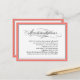 Um cartão de inserção de acomodações de casamento elegantemente bonito para incluir com seus convites de casamento. Ele apresenta acentos de texto em caligrafia com uma borda na cor da moda "coral vivo" em torno do seu texto. Você pode personalizar esta cor para combinar com o esquema de cores do seu casamento, selecionando uma cor de fundo diferente para a frente e verso deste cartão. O estilo simples e sofisticado funciona bem para casamentos em todas as estações. Edite o texto de amostra com informações de hotel ou outras informações para seus convidados.