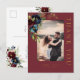 Defina o tom do seu dia especial com este **elegante cartão postal de agradecimento de casamento com flores em burgundy e folhagens com foto*. Com belas flores em burgundy entrelaçadas com folhagens exuberantes, este design exala romance e sofisticação. Perfeito para temas de casamento de outono, inverno ou elegantes, este convite é totalmente personalizável para mostrar seus detalhes únicos. Deixe uma impressão duradoura nos seus convidados com este design atemporal e lindamente elaborado.