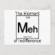 A ciência isolou um produto químico novo na mesa periódica - o elemento da indiferença, abreviado como MEH. Esta substância comum aparece como uma encolho de ombros verbal dos ombros quando você apenas não se importa. Química para as massas - um presente perfeito do calão para… o que quer que.