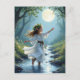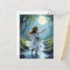 Cartão-postal: Elf está dançando em um riacho da floresta.