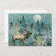 Cartão Postal Elk Majestoso na Floresta com Lua Cheia e Neve