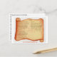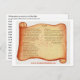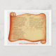 Cartão-postal padrão com fundo de cor e texto na parte frontal, preto e branco na parte traseira.