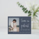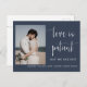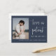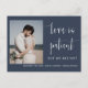 Este postal de convite para o anúncio do casamento apresenta uma caligrafia elegante e uma letra simples de tipografia sans serif com uma fotografia num fundo azul marinho para um olhar minimalista e moderno limpo, que é uma bela forma de informar sobre o seu próximo casamento. A simplicidade desta design adiciona um toque de elegância aos seus cartões de anúncio de casamento. Funciona bem com muitos temas de casamento e definitivamente um excelente extra para o seu casamento. Apenas personalize os nomes e o texto em alguns passos fáceis e personalize o cartão-postal do convite com sua foto do casal feliz para dar um toque pessoal agradável ao seu cartão-postal. Por favor, note-se: a elegante caligrafia das expressões "O amor é paciente, mas não somos" e "nada de rico só o amor", juntamente com as linhas e outras trabalhos de arte gráficas e elementos não podem ser editados, apagados ou movidos. Eles estão consertados. EXEMPLO: se você quiser obter uma amostra deste cartão-postal, poderá solicitar apenas UM cartão (alterar a quantidade para UM) e selecionar suas preferências para ver como ele é exibido e se sente. Pode consultar o resto dos nossos produtos no Zazzle em https://www.zazzle.com/store/1creativemastermind/products Se quiser consultar o nosso compro sobre o Etsy, pode consultar 1CreativeMastermind.etsy.com