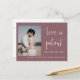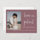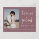 Este postal de convite para o anúncio do casamento apresenta uma caligrafia elegante e uma letra simples de tipografia sans serif com uma fotografia num fundo roxo empoeirado para um olhar minimalista e moderno limpo, que é uma bela forma de informar sobre o seu próximo casamento. A simplicidade desta design adiciona um toque de elegância aos seus cartões de anúncio de casamento. Funciona bem com muitos temas de casamento e definitivamente um excelente extra para o seu casamento. Apenas personalize os nomes e o texto em alguns passos fáceis e personalize o cartão-postal do convite com sua foto do casal feliz para dar um toque pessoal agradável ao seu cartão-postal. Por favor, note-se: a elegante caligrafia das expressões "O amor é paciente, mas não somos" e "nada de rico só o amor" juntamente com as linhas e outros elementos gráficos e trabalhos de arte não podem ser editados, apagados ou movidos. Eles estão consertados.
