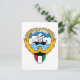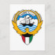 Casaco de braços do Kuwait. O emblema do Kuwait (Árabe: ش ع ر ا ل ك ا و ي ت ) foi adotado em 1962 e consiste no escudo da design de bandeira sobreposto a um falcão ouro com asas exibidas. O falcão suporta um disco contendo uma nave de navegação boom, um tipo de dhow, com o nome do cheio do estado escrito (em árabe) no topo do disco. O dhow é um símbolo da tradição marítima do país e encontra-se também nos casacos nacionais de armas do Catar. O falcão é um símbolo da linha de Banu Quraish, a que pertenceu o profeta Maomé, e que se encontra igualmente em muitos casacos de braços da Península Arábica.