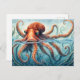 Uma ilustração vibrante e detalhada de um polvo com tentáculos giratórios que se estendem em todas as direções. O polvo é representado com texturas intrincadas na pele, mostrando as xícaras de sução e o movimento dos fluidos. Os olhos da criatura são intensos e focados, dando-lhe uma expressão misteriosa e inteligente. Colocada sobre fundo do mar profundo, a imagem captura a graça e a força do polvo, evocando um sentido de beleza e enigma no seu mundo subaquático.