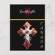 Uma cruz enfeitada com uma cruz vermelha e branca impressionante, simbolizando a fé e a unidade num contexto espiritual.