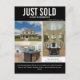 Agentes de listagem, divulgue suas habilidades de venda para novos clientes com esses cartões-postais elegantes da Just Sold. Publicidade moderna em preto com tipografia branca com detalhes da casa e fotos de sua última venda em seu bairro. Envie esses cartões-postais sofisticados para clientes em potencial em sua área imobiliária. Personalize com o nome da sua empresa imobiliária e detalhes de contato no verso.