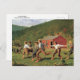 Cartão-postal de arte fino com a pintura a óleo, Snap the Whip (1872), do artista americano Winslow Homer (1836-1910). O School Boys jogando fora perto de uma sala vermelha, uma sala de aula, com montanhas distantes.