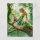 Cartão Postal Encantando Fada com Coruja na Floresta