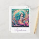 Uma serena sereia com fechaduras lacrimogêneas e uma cauda rosa cintilante senta no meio de um chão colorido do oceano, cercado por conchas e algas marinhas. Seu sorriso gentil e mão estendida o convidam a explorar o mundo subaquático.