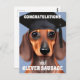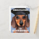 Um cartão de parabéns Dachshund fofo para uma pessoa que se formou.