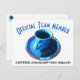Um cartão postal horizontal engraçado para amantes de café e tipos competitivos. O cartão apresenta uma fotografia aproximada alterada digitalmente de uma xícara azul cheia e um pires com grãos de café. O texto azul arqueado acima da fotografia diz "Membro Oficial da Equipe". O texto preto abaixo da fotografia da xícara e do pires diz "Esquadrão de Consumo de Café". Preencha os campos do modelo para alterar todo ou parte do texto, remova o texto ou edite usando a ferramenta de design para selecionar um estilo de fonte, tamanho e cor que você gosta.