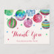 Este obrigado de chá de panela para o qual você faz o cartão postal é perfeito para um chá de casamento em dezembro. O design apresenta texto vermelho e encaracolado com ornamentos pendurados no topo do cartão, e um manchete vermelho e azul colorido descendo em direção ao texto. Personalize a frente da placa com uma mensagem curta. Personalize as costas com uma mensagem de obrigado mais longa. Como alternativa, deixe a seção modelo de mensagem do obrigado da da mensagem no vazio traseiro para escrever uma nota personalizada refletida em cada cartão postal depois que eles chegarem. Estes cartões postais podem ser usados para o chá de panela, casamento ou qualquer evento especial.