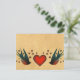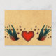 Tatuagem retrorística de andorinhas e estrelas com coração vermelho.