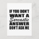 Se você gosta de citações sarcásticas engraçadas ou designs humorísticos excelentes então esse slogan original " Se você não quer uma resposta sarcástica, não me pergunte " é para você. É um presente excelente para sua família, amigos ou para você mesmo! Esta design é ideal para quem ama sarcasmo e humor. Se você gosta dessa citação engraçada, veja trabalhos de arte mais parecidos na loja Omitay. Fique seguro e obrigado você por apoiar um artista local.