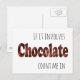 Este cartão postal engraçado vai mantê-los sorrindo com seu design único. As palavras dizem, "Se envolve Chocolate eu estou dentro".