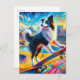 Cartão Postal Engraçado Surreal Skateboard Border Collie