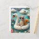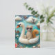 Cartão Postal Engraçado Woolie Swan flutuando com um gato