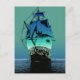 Um navio clássico artístico de velas múltiplas com fundo de paisagem.