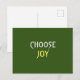 "Escolha a alegria" — um lembrete para abraçar a felicidade a cada momento. Este cartão-postal encoraja-nos a focar-nos no positivo, a encontrar alegria em coisas simples, e a fazer da felicidade uma escolha consciente. Ideal para compartilhar uma mensagem alegre com um amigo ou guardar como um lembrete diário para viver com um coração alegre.