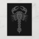 Este design de escorpião único é decorado com espirais e padrões de pontos complexos. As duas pinças do escorpião são levantadas para cima e a cauda e o ferrão apontam para baixo, criando um padrão simétrico. Este design de escorpião agressivo é uma representação espantosa desta criatura maravilhosa.