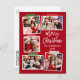 O Script de Pincel Moderno Feliz Natal 5 Colagem de Fotos com Cartão-Postal de Festas de Fita de Artesanato. Fundo Vermelho.