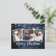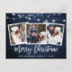 Rustic Blue Wood Brussel 3 Família Fotográfica Cartão de Natal Feliz com Luzes de Cordas
