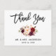 Manuscrito em Pincel Moderno Watercolor Burgundy Casamento Floral Obrigado Cartão-Postal