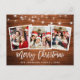 Placa de Natal Feliz da Família Bruta de Madeira 3 Roteiro Fotográfico com Luzes de Cordas