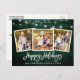 Cartão-postal de Feriados Feliz da Família de Pincel Verde Russo com Luzes de Cordas