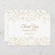 Um cartões de agradecimentos chic com elegante poeira dourada confetti e texto chic. O reverso apresenta o seu obrigado, os nomes e os detalhes do endereço de retorno. Perfeito para casamentos, chás de panela, chás de fraldas, batismos, festas de noivado, comemorações de aniversário, graduações e outros eventos especiais ao longo do ano! Projetado por Thisnotme©